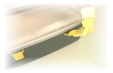 Чтобы избежать переноса внутрибольничных инфекций рекомендуется проводить дезинфекцию с использованием технологии специально подготовленных мопов в пластиковых контейнерах Moboxx с герметичными крышками, которые расположены на тележке.